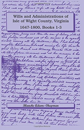 This great site contains about Wills and Administrations of Isle of Wight County, Virginia, 1647-1800:, Books 1-3 6 thousand ebooks from a huge selection of authors. The bunch of these publications come in the following types: fictions/novels, short tales, poems, essays, takes on, nonfictions. Many of these books are basic works of Us Literature, English Novels, and Irish Materials from well-known authors for instance William Shakespeare, Tag Twain, Charles Dickens, Oscar Wilde, Robert Fros, Edgar Allan Poe, Alexander Pope, Arthur Conan Doyle, Anne Austen. and more authors' works will probably be added to the online collection. Throughout these Wills and Administrations of Isle of Wight County, Virginia, 1647-1800:, Books 1-3 particular pages, you will find many honor winning publications available for your on the internet reading. Delight in and please tell a pal, thanks.